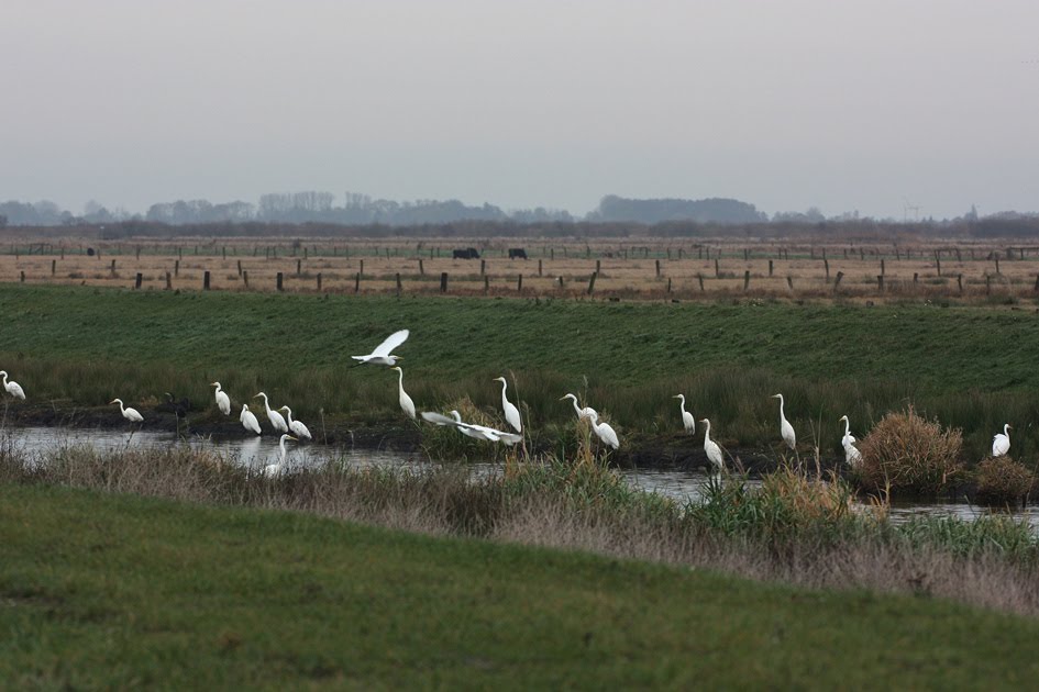 Langs een kanaal door de Ochsenmoor-vernasserung ten zuiden van de Dümmersee zaten > 50 Grote Zilverreigers. Een Oost-europees aandoend aantal. We vonden het imponerend.